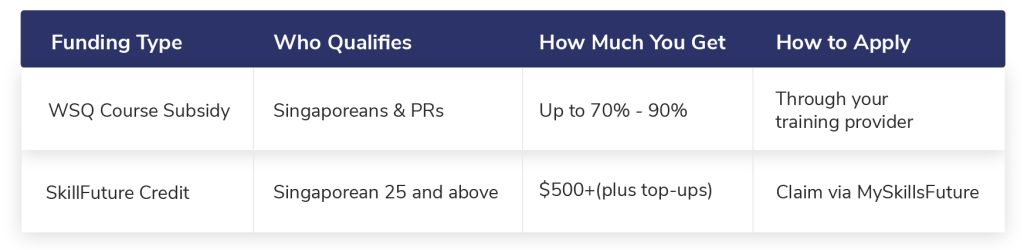 Look out for course descriptions that mention “WSQ-accredited” or list an SSG course code. If in doubt, contact the training provider to confirm eligibility.